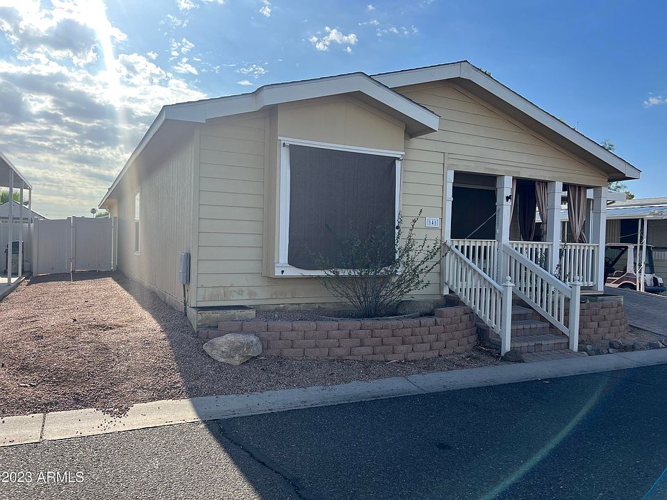 This mobile home is located in a quiet and peaceful 55+ community in Peoria, AZ. The community is close to shopping, restaurants, and medical facilities.