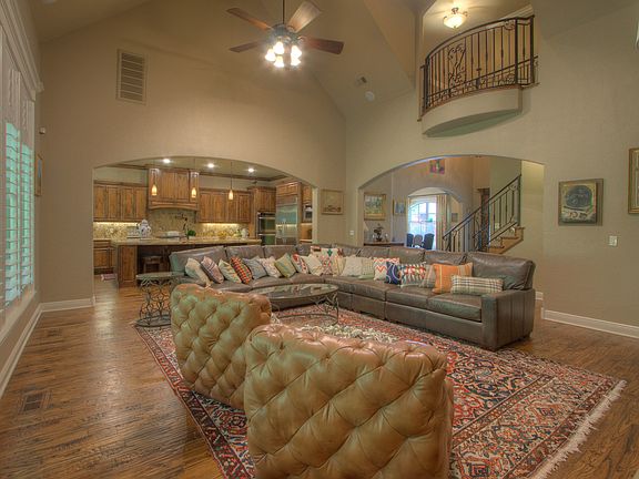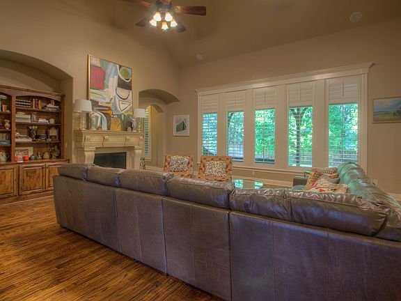 Luxury finishes are in this gorgeous home located in the Legends. Gourmet kitchen w/granite & high end appliances opens to spacious great room. Custom plantation shutters, blinds, & window coverings throughout. Master bed has its own central heat & air, extra large closet w extra storage leading into the laundry room. Upstairs: 3 beds, game room & media room. Storm shelter in 3rd. car garage. Large covered patio has fireplace/ gas grill. Water softener and humidifier for the whole house. Control 4 system.