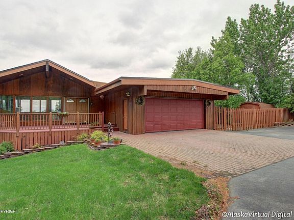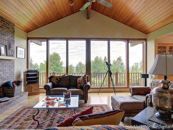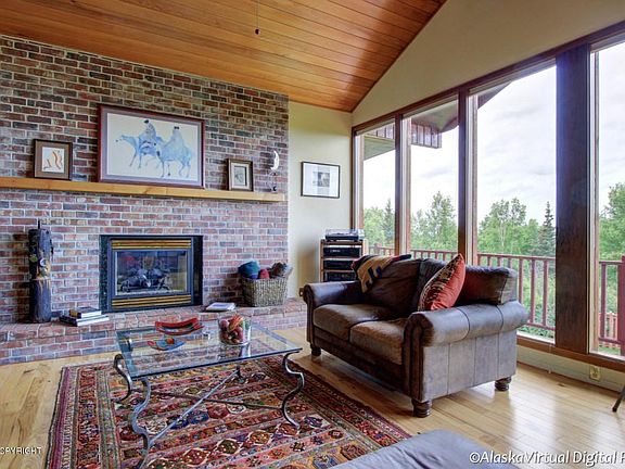 Absolutely stunning views from Sleeping Lady to Denali!Kit w/maple cabs, gas Jenair downdraft, ss counters & SS applncs.LR w/wall of windows, vaulted T&G ceiling & gas FP.MBR on main floor w/dbl sided fireplace & bay window.MBA w/dbl sink, jet tub & WIC.Lwr lvl FR w/wood stove & access to patio.Beautiful landscaped lot w/RV parking & plenty of storage.Close to trails for hiking, skiing & much more
