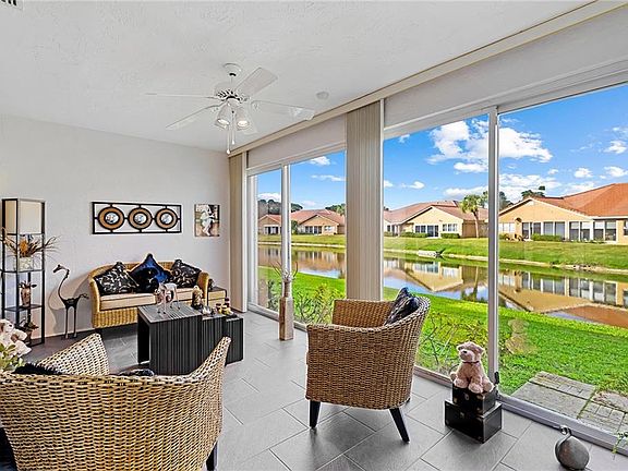 Incredible opportunity to own a maticulously maintained 2/2 villa in beautiful Sweetwater/Boca Chase (a gated 55+ Community). This light and bright corner unit is waterfront, features a 1 Car Garage, indoor washer/dryer, upgraded tile floors throughout, newer kitchen with gorgeous backsplash and modern black appliances. The primary bedroom has two closets and a beautiful view of your Florida room and the lake! Your new home is protected by easy to use accordion shutters and is calling your name! Active community also has many amenities, such as a fitness center, heated pool, tennis courts, and so much more!