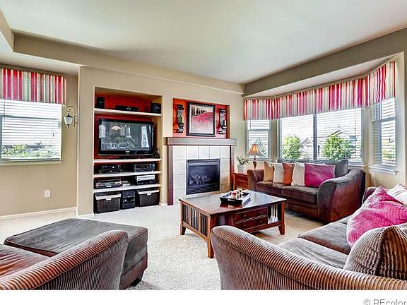 Welcome home! Come and see this gorgeous 3 story home and enjoy the beautiful Mountain Views. Main level features formal living and dining areas to entertain with, an open spacious family room, cozy fireplace and eat-in kitchen. Second floor includes a master bedroom with views and a 5 piece en suite plus dual walk-in closets, flex space, three additional bedrooms, full bath and a conveniently located laundry room. The third floor highlights a bedroom with a walk-in closet, full bathroom, storage, and living space. Easy commute to DIA - Denver - shopping - restaurants. Exterior just painted! Quick possession!