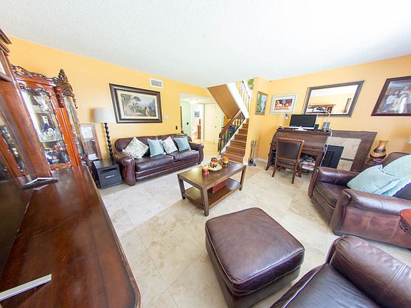 Welcome to the charming "Fountain Park" community. As soon as you walk into the Single Family Residence, you begin to feel the warm home feeling. You will immediately notice the travertine tiles throughout the entire first floor, that will lead you to the kitchen. Which features dark granite counter tops, custom cabinetry with a built in wine rack, and newer fixtures, including the sliding door. The living room is very spacious and is great for entertaining or spending quality time near the cozy fireplace. When you walk up the laminated wood floored stair case with custom hand railings, you'll be amazed by the large window drawing in lots of natural light into the home. The baseboards and the dark laminate flooring are all throughout the second floor. The Master features one large closet, with mirrored sliding doors and an on suite bathroom. There is newer dual pane windows throughout the home. The 2 car garage is detached and has plenty of storage. A large private patio located right off the kitchen is Perfect for entertaining or taking a Coffee Break. There's an RV p