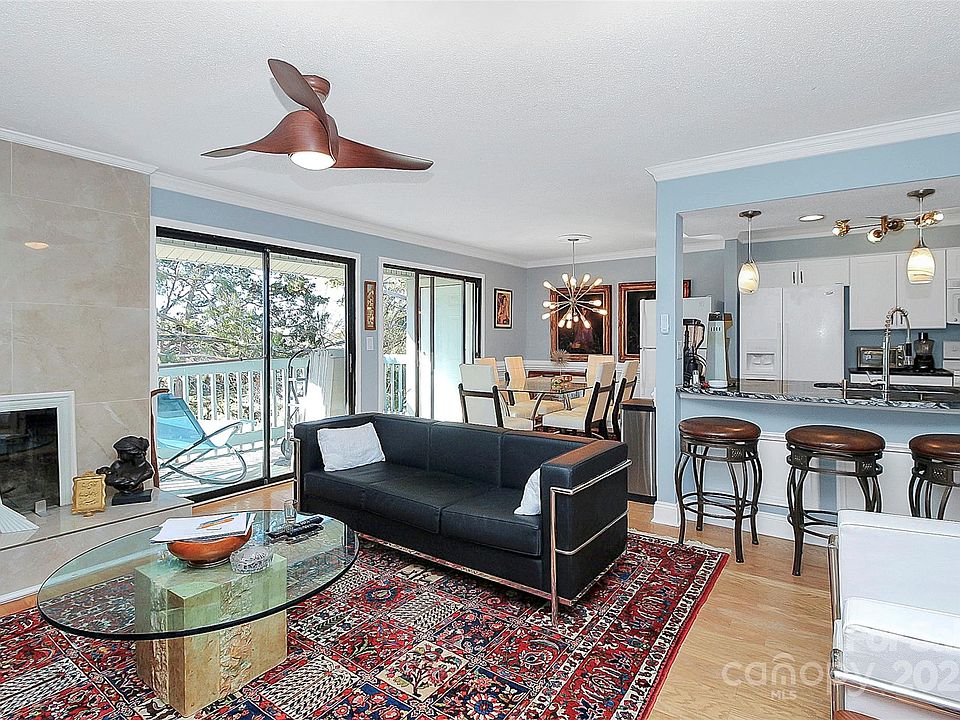 Discover this stunning second-floor end-unit condo in the highly sought-after Carmel Village community! This beautifully updated 2-bedroom, 2-bath home features a completely renovated kitchen with modern white cabinetry, sleek granite countertops, a double sink, and elegant marble flooring. The main living area boasts rich hardwood floors, stylish new lighting, and a cozy fireplace with a sophisticated marble mantel. Both bedrooms have brand-new carpeting, while the primary suite offers a walk-in closet with luxurious marble flooring. Both bathrooms have been tastefully updated for a fresh, contemporary feel. Conveniently located near top shopping and dining destinations in the vibrant South Charlotte corridor, this one-of-a-kind home — schedule your showing today!