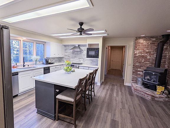 • Fireplace features: Living Room, Den, Wood Burning Stove, Kitchen