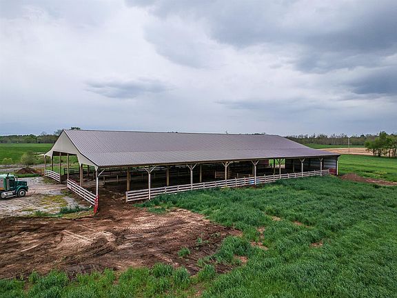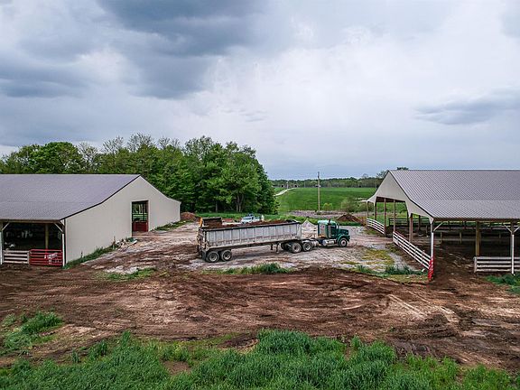 Must see these 2 barns that can be revamped to do anything. 32,000 sqft but now being used for calf feeding. The barns built tough - has 4 sections each to keep all calves organized & has feeding troughs & water w/heaters for winter. Each section has its own entrance & exit w/a sick calf bay - Electric, Gutters w/down spouts & public water. There's cattle carpet covered w/gravel between bards. 10 Acres of hay fields and about 5 acres of woods.