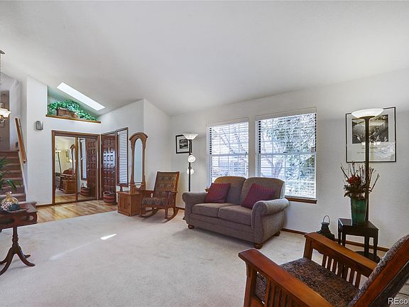 Welcome to this stunning home in the highly desirable Woodbury Hills neighborhood! Walk through the professionally landscaped front yard, through the charming front porch and be greeted inside with vaulted ceilings, lots of natural light and an open floor concept, perfect for entertaining. The spacious living room flows into a large, formal dining room. The adjacent kitchen boasts plenty of cabinet space, updated appliances, Corian counters, a brand new backsplash, and a breakfast nook that overlooks a stunning family room with hardwood floors and a brick fireplace. Upstairs the master bedroom with a walk-in closet has a beautifully updated, attached master bath with a towel warmer, custom-built sliding barn doors, a bidet (an oasis in the middle of our nation's current toilet paper desert), and a gorgeous tile walk-in shower with bench. Two more bedrooms and a full bath complete the upper level. In the basement you will find another spacious bedroom, 3/4 bath, and office space! Back upstairs, French doors in the kitchen and family room open to a beautiful, expansive, newer TimberTech low maintenance deck and a spacious, fenced-in backyard complete with mature Colorado pine trees, garden beds, and a couple small storage bins. The entire exterior of the home was just professionally painted, and brand new gutters and downspouts were installed. Located just a few doors down from a park, within walking distance of high performing elementary, middle, and high schools, and less than 1.5 miles away from The Ridge Recreation Center and The Edge Ice Arena, this GORGEOUS home is in a prime location that can't be beat! Make it yours today!