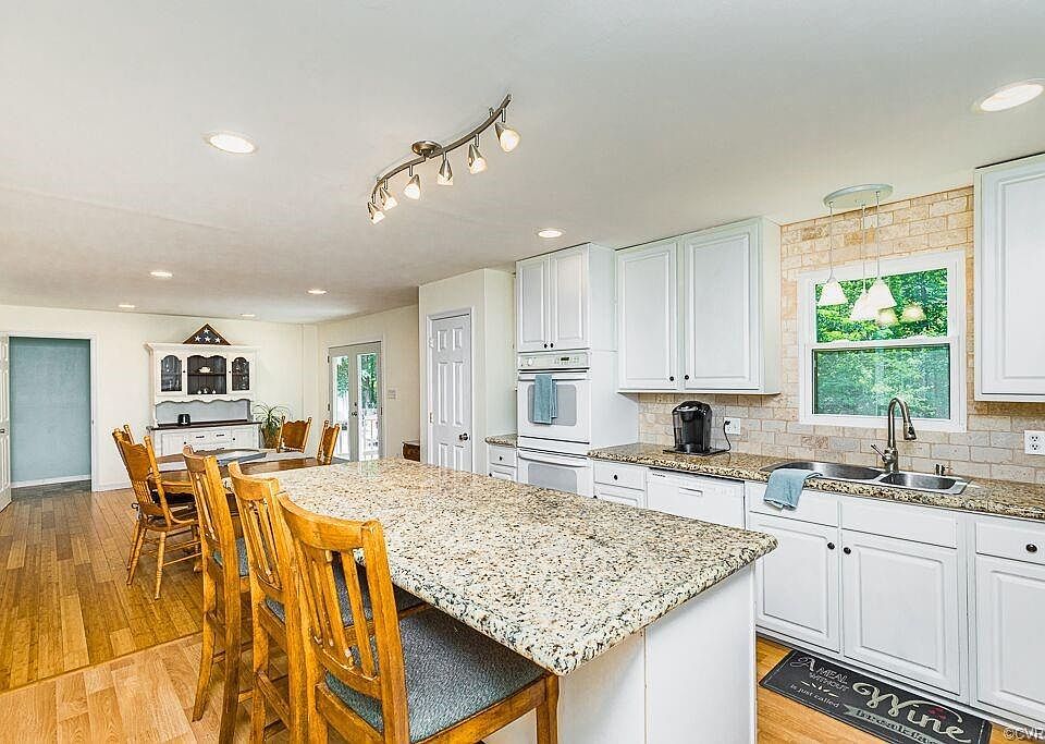 ONE OF A KIND HOME on an ACRE lot on a private road in the Glen Allen High school district! NO HOA! Renovated kitchen with granite counters, double oven, new tile back-splash, pendant lights, and HUGE ISLAND! Hardwoods (bamboo) upstairs, dining area, and family room. Large laundry room with lots of storage. UPSTAIRS are 3 bedrooms and 2 full baths. Master bath has brand new double vanity, tiled shower with jets. DID I MENTION THE NEWLY UPDATED FULL BASEMENT? -- with **BRAND NEW beautiful, low maintenance vinyl plank flooring** updated kitchenette cabinets, another full bath, bedroom and living area (perfect for in-laws, teen, or man cave)!!! Attached 1.5 car, rear entry garage, detached shed. LOTS OF PRIVACY, BUT CLOSE TO EVERYTHING! Right off of Woodman exit on 295 in GLEN ALLEN. Has a solar system in place to reduce energy costs!!! Back on the market due to no fault of the sellers! Buyer wasn't able to get financing completed!