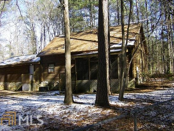 Privacy is what you get in this Great Log Home on 2 wooded acres. This home has a 2 story Great Room with a Large Rock Fireplace. There is a Bedroom on the main with a full bath, Kitchen with separate oven, cook top, and microwave oven all built in. Lots of cabinets and pantry. Upstairs there is a large Loft with walk in closet and Full Bath that would be a great second Bedroom. Beautiful hardwood Floors through out, tile in the kitchen and both baths. Screen In Porch to enjoy the great outdoors. Double Car Side Entry Garage. Large Fenced in Backyard with Green House/Storage. House being Sold AS IS.