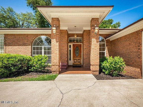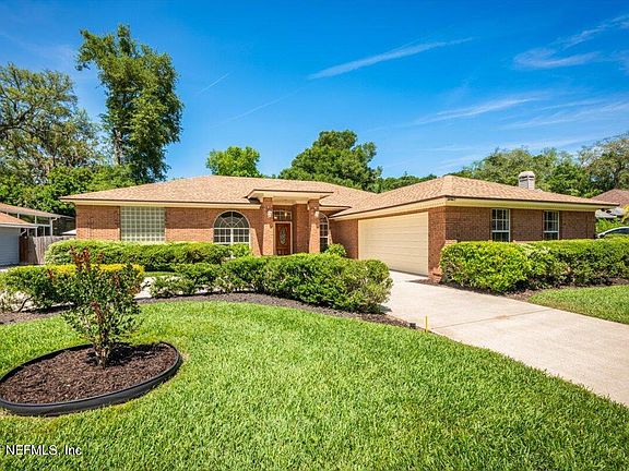 Gorgeous 4 sided brick home in the highly sought after, Fort Caroline area. Side entry garage with a circular driveway. You're going to fall in love with this sprawling ranch all on one level. 4 bedroom 2.5 bath, There's a formal dining and living room. Oversized family room. Soaring ceilings throughout which gives it a luxurious feel. Large eat-in kitchen with breakfast bar. huge pantry. New paint throughout, new carpet in all the bedrooms. 2 new water heaters, 600' well for the sprinklers. 2 car garage with epoxy flooring. Covered back porch and a huge private backyard with plenty of space for a pool. Tons of Curb appeal. Very well maintained, one owner. You don't want to miss this one.