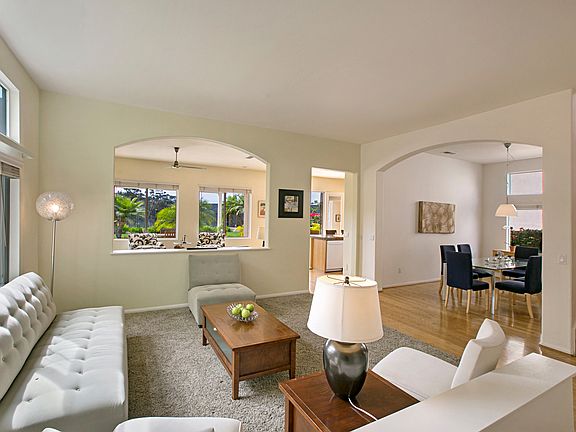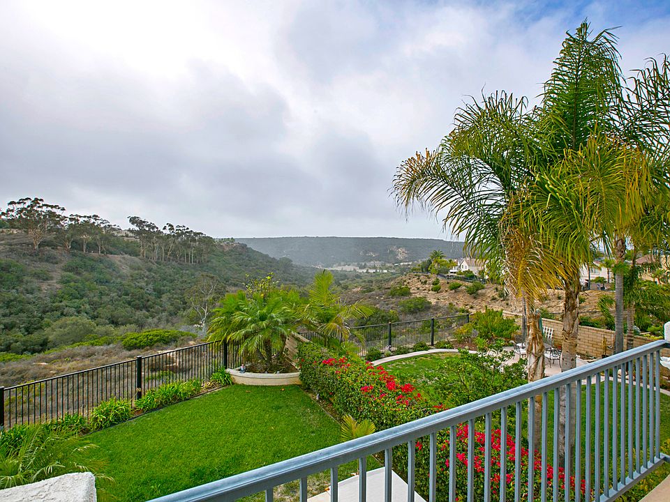 This premium canyon rim location home boasts a family size yard with stunning canyon views. Your south backyard enables light to project through your many windows for the idyllic light and bright feel. The master suite extends a private balcony to soak in all the panoramic canyon views and sunsets. You and your guests will enjoy the convenience and comfort of having a bedroom and full bathroom on the main level. This Carmel Valley jewel also offers air conditioning, granite kitchen countertops, wood floors, and more! Other features include: 1. Recessed lighting throughout 2. Ceiling fans 3. His and Hers closets in master suite 4. Central Vacuum 5. Surround sound speakers downstairs