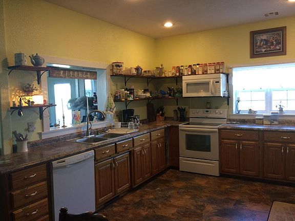 is property has enormous potential. Rectangular corner parcel with a 1780 sq ft Shop/Home. 24x36 Garage; 2-10 foot doors. 16x20 Storage building. RV hook up, & many fruit trees. Opposite end of land has scattered trees making it open to storage buildings, multi-family rentals or even building a home. Great business location or convert home into a rental. Other businesses close by, I-49 hwy frontage and business sign revenue potential.Living rm wired for surround sound.Endless possibilities