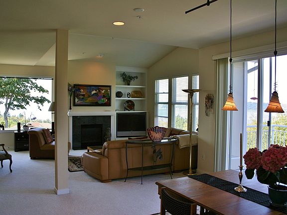 Amazing view of Sound, Whidbey Island and the Olympics from the living areas and 3 entertainment size private decks. Gourmet Kitchen has prep island with seating and is open to the large dining room and living room, great for entertaining. Living room features expansive view windows, gas fireplace and built-in entertainment center. Lower level contains Master, guest bedroom, den & laundry area. All rooms face out to nature preserve. Attached 2 car garage large enough for additional storage