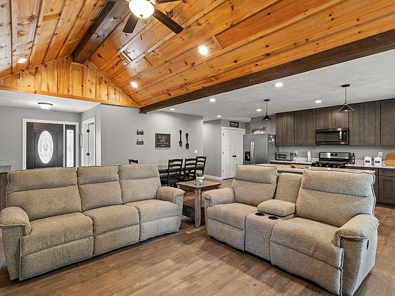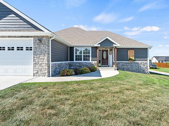 Quality built 3 bed + office, 2.5 bath home in Crestwood Estates! Situated at the end of a cul-de-sac, this home offers vaulted wood ceilings, granite counters, a privacy fence and 12x15 new storage shed! From the covered front porch, discover an open concept floor plan. Living room features a beamed ceiling, stone fireplace, and double door access to the back deck. Eat-in kitchen has wood cabinets, stainless appliances, pantry, and a center island with barstool seating. Primary bedroom offers a dual sink vanity w/granite top, jetted tub, walk-in tiled shower, and walk-in closet. 2 more bedrooms share a full hall bathroom. Office space could easily be used as a 4th bedroom! Off the 2 car garage is a convenient powder room. Outside, you will love the fenced in yard, covered back deck, additional patio space w/propane line for grill, and side gravel driveway for additional parking. Located across from Whisper Oaks Golf Course. This one won't last long, call to schedule a tour today!