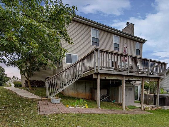 Gorgeous 2 story with 4 bedrms, 3.5 baths, boasts great curb appeal with professional landscaping. Upon entering, you will notice the immaculate hardwood flrs throughout the entire main level. Eat-in kitchen features solid surface counters, stainless appliances w/ ample cabinet space & pantry. The kitchen is open concept to the family rm which is great for family living. The wood-burning fireplace is the focal point of the family rm & flows directly into the living rm/office. Main flr laundry for your convivence. Formal dining rm for the holidays. Upstairs, you will be wowed by the large master suite w/ vaulted ceilings & luxury bath featuring new flooring, separate tub & shower & large walk in closet. 3 additional bedrooms & a full bathrm complete the upstairs. Walkout lower level features an office, sleeping area, rec rm, & full bathrm, plus a large storage rm. This home is conveniently located near schools, shopping, and highway access. Great deck & patio for outdoor entertaining!