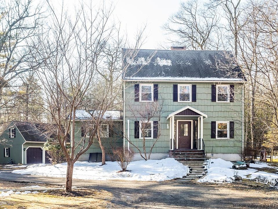 This beautiful 2 story home is set far back from the road and is surrounded by over 24 acres of pristine woods. Privacy is the word of the day! Make your own trails to wander and ponder! The first floor has a comfortable living room and dining room combination with a hook up for a wood stove. The galley style kitchen, with stainless appliances and stone counters, leads into a spacious den with access to the deck and hot tub at one end. At the other end of the kitchen there is a mudroom with laundry and tons of storage. The first floor also has a stylish full bath. The second story has three bedrooms and a lovely full bath with a quiet spot at the top of the stairs to read or make a call. The fully finished attic has a modern full bath and is currently being used as a primary suite by the current owners. The back deck has a hot tub that looks out into the fenced yard and the woods beyond. There is no better place to retreat from the outside world. When you do want to venture out, this home is close to Saugerties, Woodstock, and Kingston with a myriad of restaurants, galleries, museums and shopping.