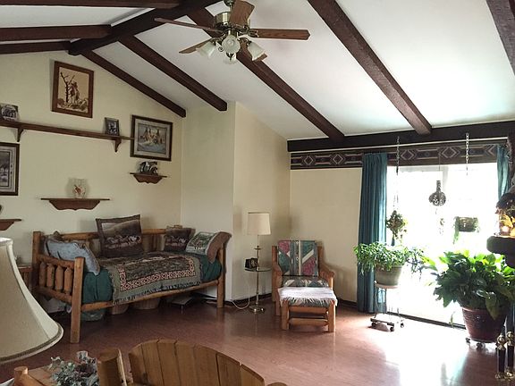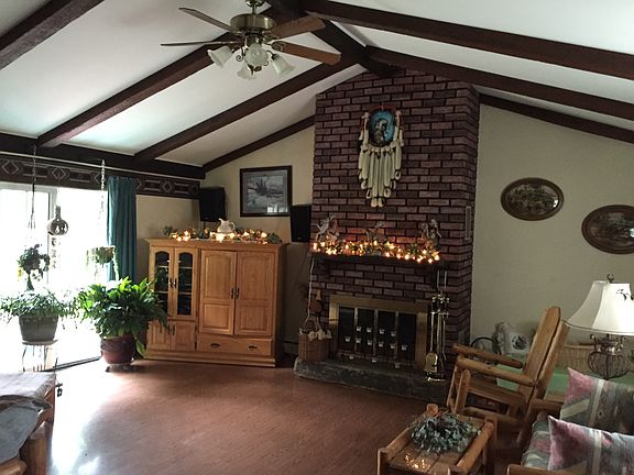 Country is what you'll find--This home features vaulted ceiling in living room also a wood burning fireplace. French doors off dining room. There's an over sized garage/barn with 4 horse stahls. All on 6+ flat acres.