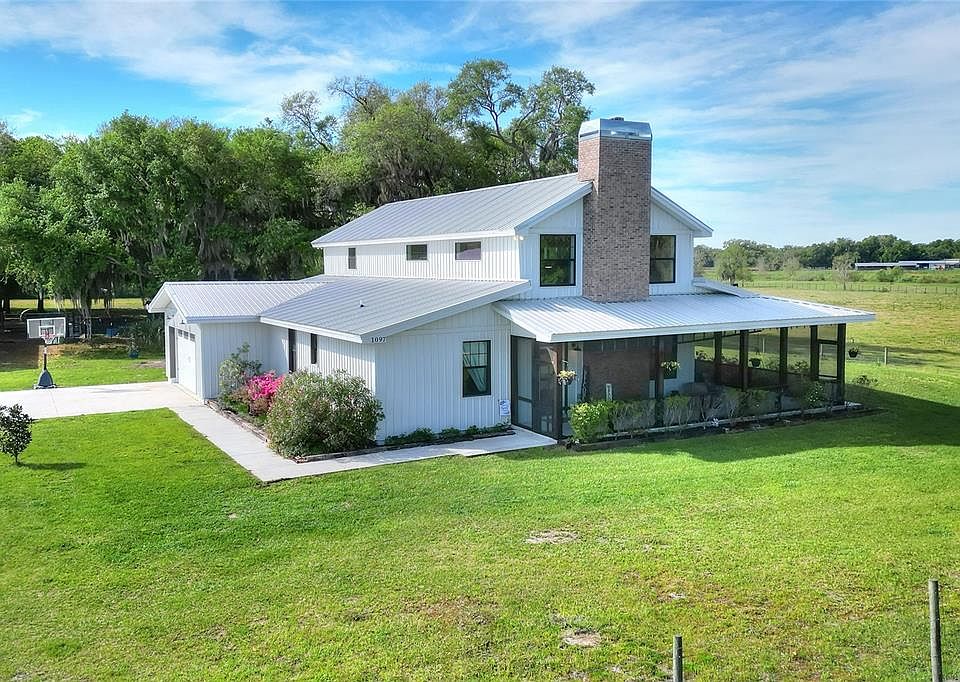 Enjoy wonderful sunsets from your wrap around porch overlooking the serene pasture land. This is a beautiful custom designed home, 2,000 sq ft barn with 200 amp power along with covered parking and stalls, a silo agriculture office with 737 ht sq ft which includes a kitchen, living room, office space, a bathroom and a loft. All of this is situated on 12.1 acres in the NW Lakeland Community of Country Class in Itchepackasassa. Beautiful cleared land which is fenced and has lovely, shady oaks and fruit trees. Built in 2020, this is a farmhouse/barn style house constructed with Galvalume metal siding and roofing for minimal maintenance. This home is well insulated for lower energy bills and is very light and bright. You will have 2,714 heated square feet of spacious living area with 4 bedrooms and 2.5 baths. There is a wonderful open concept floor plan with a combination Great room, dining room and kitchen plus a 2 floor loft with open living room/ workout area/flex space, a 4th bedroom and two huge walk-in closets. Spacious split bedroom plan with lots of closet and storage space through out the home. The kitchen has stainless steel appliances including a gas range. There are granite counter tops and gorgeous maple cabinets, a deep farm house style sink and a large walk-in pantry and a 1/2 bath - perfect for the cook in the family and a wonderful gathering area when entertaining. The Great room has a warm, inviting fireplace and barn style French doors overlooking the back porch. The primary bedroom and bath suite will be your oasis after a long busy day...soaking tub, walk-in shower with rain shower head, water closet, linen closet, huge walk-in closet, plus granite counters, dual sinks and a wood vanity. The large 2nd and 3rd bedroom share a jack-and-jill bath. There is a huge utility/mud/storage room with space for a refrigerator or gun safe, cabinets and a storage closet. The laundry room has a large capacity washer and dryer that will stay with the home. Propane tankless hot water heater and gas dryer, 5 ton A/C, polished concret floors, pine interior doors, 5" baseboards. There is an oversized, side entry garage. The Silo has 737 Ht Sq Ft living area of heated and cooled space, Common and Kitchen area are 23x11, Office 12.10 x11.2, Closet 7.8x4.9, Bathroom 9.9x6, Loft Area 15.4x7.8. There is an apartment sized stove, a microwave and a refrigerator in the kitchen, the kitchen has room for an eating space. The bathroom has a walk-in shower. The main home has a Simply Safe Alarm System and the silo has a doorbell camera. Lush mature landscaping, fruit trees and so much more. Plenty of room to spread out, bring your toys and your animals, zoned for cattle and horses. Easy access to !-4. County convenience with the advantages of city living. This is a real must see and welcome home!