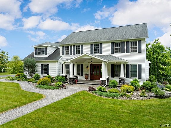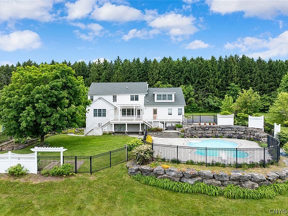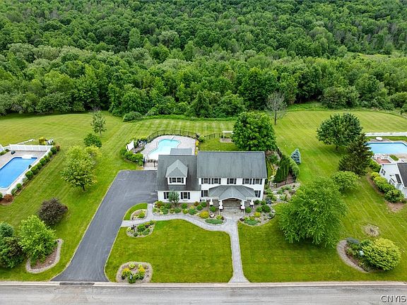Nestled on a sprawling 5-acre estate, this custom built property offers 5 bed/3ba and a host of amenities designed to elevate your lifestyle with a meticulously designed floor plan that seamlessly blends style and functionality. The spacious areas provide ample room for relaxation and entertainment. Channel your inner chef in the gourmet kitchen equipped with high-end appliances, Custom Woodcraft cabinetry and is sure to inspire culinary creativity. The owner’s suite is a true sanctuary, featuring an ensuite, laundry and a Custom Woodcraft walk-in closet of your dreams with a custom ironing board. The picturesque backyard is a delight, with lush landscaping, apple, plum & cherry trees & raspberry bushes with a pergola. The crown jewel of this outdoor oasis is undoubtedly the sparkling in-ground saltwater pool with cascading back steps & rock wall. The garage has an outlet to plug in your electric car and a portable backup generator with outlet. Escape the city life, yet still be conveniently located just minutes away from shops & restaurants, the Hospital, Turning Stone Resort and Casino and the NYS Thruway. In House of the week 6/21 online & 6/23 in the Post Standard paper.