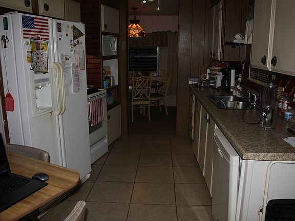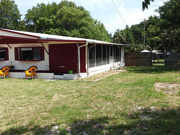 28 x 56 Double- wide mobile home on own property( No lot rent )furnished . Carport with additional parking in driveway and storage building at end- attached to home. Screened porch with additional storage room open to back yard with privacy fence. 3 bed, 2 full bath, Living room, kitchen, dining room, extra open room, full size washer/ dryer hook-ups in hallway laundry closet space. Sits on corner lot in quiet, unrestricted, mobile home neighborhood. Located in South Daytona, Florida 4 miles from beach, 4 miles from Daytona International Speedway.