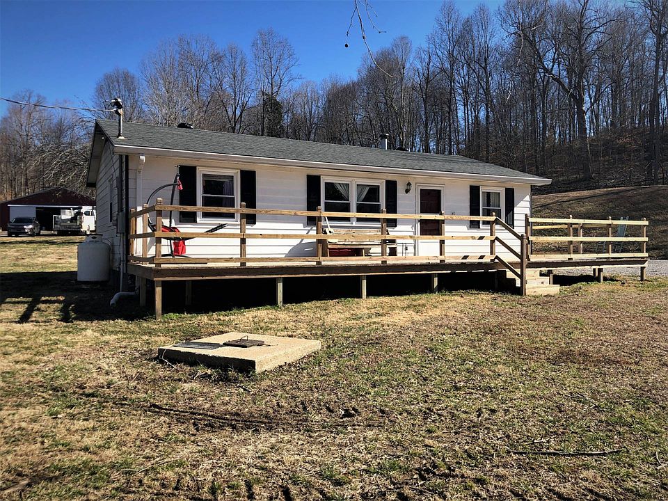 Located on a quiet country road only 10 minutes from downtown Hartford this may just be the perfect location for you! Sitting on 5 acres this adorable 1300sft home features 3 total bedrooms and 2 baths. The spacious master bed and bath is a new addition with bamboo wood flooring and beautiful sliding barn doors. The split floor plan is the most desired! Open kitchen, living and dining area make it perfect for whatever the situation. Other features include a roof less than 2 weeks old and a new wooden wrap around deck. Outside you'll have a relaxing creek visible from the front porch and plenty of space to provide for goats and chickens! Thats not all though... included on this property is also a 40x80 metal shop with 10' ceilings electric and water from a well. Priced at $174,900. this one won't last long!