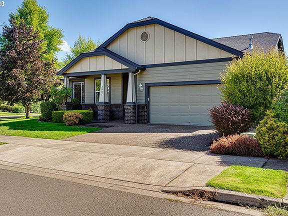 Delightful 1 level home on a corner lot in West Eugene! Great room design with a comfortable open layout. Kitchen includes a pantry, stainless steel appliances, eat bar & lots of usable counter space. Extra nook in the living space for a work area. Natural gas cook stove, forced air, water heater & fireplace to keep energy costs down. Wide hallways and double door entrance to the primary suite. Indoor laundry room with utility sink and extra cabinetry. Beautiful outdoor space has mature landscaping, large deck & irrigation system. Tool shed for extra storage. Low traffic street 1 block from Candlelight Park. Homes don't last long in this neighborhood so make an appointment to see this one today!