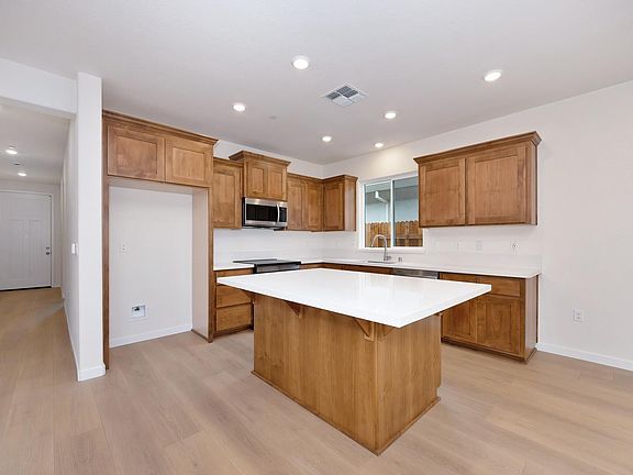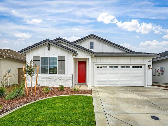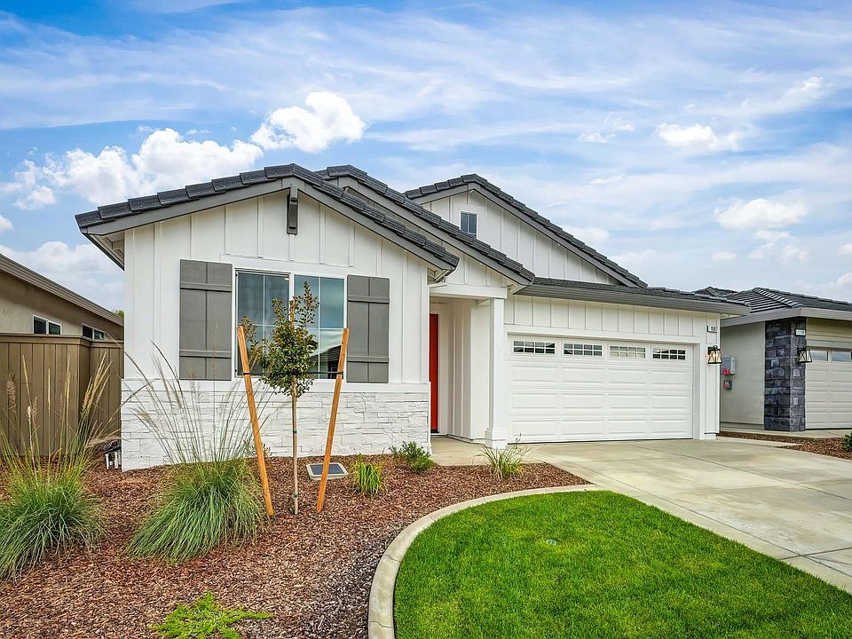 Homesite 40 is located in Highline Village at Sierra Vista, a collection of single-story homes. This JMC Home is a 1,343 SF single-story home with 3 bedrooms, 2 full bathrooms and a two-car garage. Two secondary bedrooms are located at the front of the home, separated by a shared bathroom. Beyond the entryway, the home opens up to the spacious great room that is separated from the kitchen by a large island with barstool seating. The kitchen features shaker style cabinets, quartz slab countertops and a pantry closet for extra storage. A dining area is tucked in the corner making efficient use of the space. Around the corner from the great room is the primary suite with a walk-in closet, double-sink vanity and shower. Outside in your backyard is an outdoor covered patio for extra living space. Owned Solar Electric System (Roseville Electric Utility) is included in the price of this home. Designer Finishes Package #1 has been preselected for this home. This home is move-in ready.