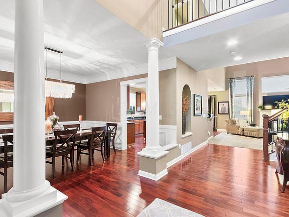 Beautifully updated and maintained 5-level split in Oldstone Crossing! This move-in ready 4 bedroom 31/2 bath home features hardwood floors throughout the main level including entry, formal dining space, half bath and kitchen featuring high quality stainless steel appliances and granite countertops. The living room features a gas fireplace and vaulted ceilings. The second floor offers all 4 bedrooms and three full baths, tray ceilings in the owner's suite and updated owner's bath with a custom walk-in closet. Custom wainscoting throughout, including the large finished basement with wet bar. One of a kind back patio built for entertainment, an irrigation system with electric fenced in yard space, and the list goes on. Come fall in love with this beautiful home!