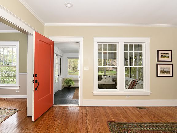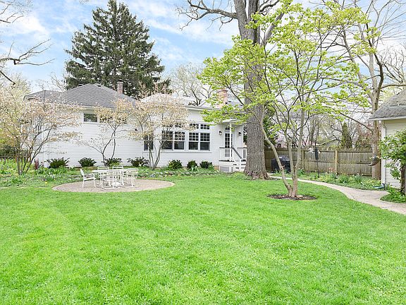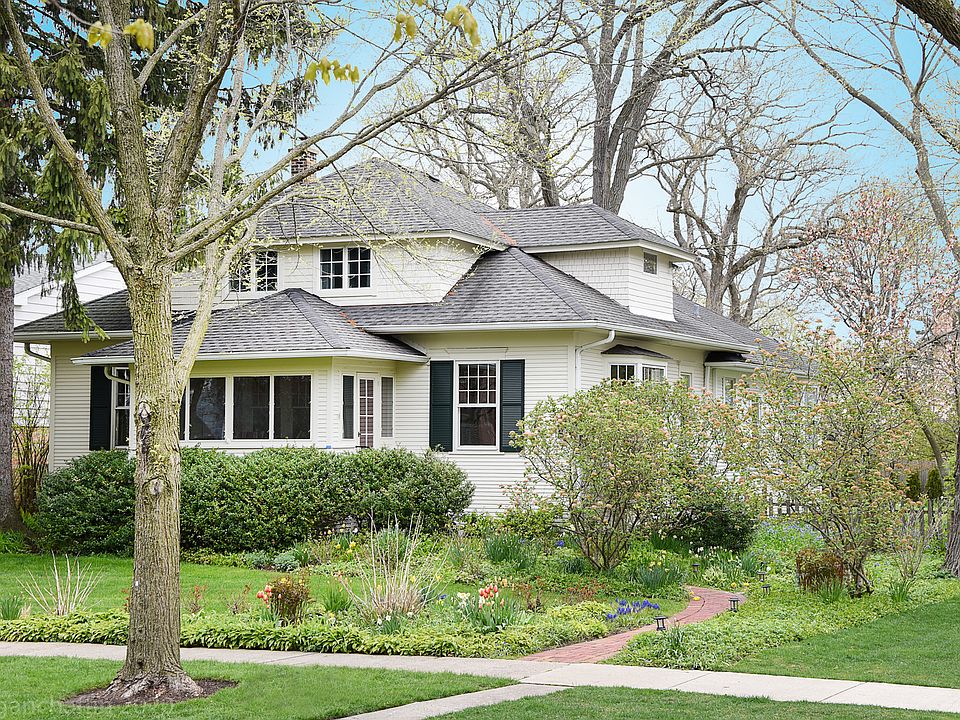Absolutely pristine home with First Floor Mastersuite on over-sized 69'+ wide lot (12,388 sf) with 2002 renovation and expansion located in idyllic Crow Island neighborhood steps from K-8 schools! Curved brick walkway leads you to the inviting enclosed front porch, front door and light-filled foyer. High ceilings, hardwood floors and magnificent windows throughout. Elegant dining room and whimsical living room with built-ins. Sought after private first floor office/den with fireplace is located off foyer. Desirable chef's kitchen has custom cherry wood cabinetry, highend appliances, granite counter tops, large island and walk in pantry and opens to fabulous step down family room with soaring ceiling, clerestory and a wall of windows providing views of the professionally landscaped yard with patio. Mudroom has large closet and is accessed from family room and backdoor. The beautiful first floor mastersuite includes his and her closet and luxurious masterbath with separate shower, Jacuzzi and stone vanity w/double sinks. Three family bedrooms on second level with full bathroom. Gorgeous fenced backyard with 2 car garage plus storage loft. Spacious basement has laundry area, workshop and plenty of storage. Close to town, train, parks, schools, golf, tennis and skating rink. A must see! Not in floodplain.