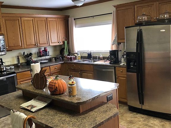 This 2006 home is 4 bedroom, 2 baths, 2280 sq feet, sitting on a hilltop on 1.97 acres; the master bedroom is HUGE and has it's own bathroom attached. The 3 car garage (plus extra storage) is attached to a new deck that has been added to the backside of the home, this is perfect on those rainy days to park and get inside without getting wet. It has all new flooring and a new roof added in 2017. It has a garden spot ready for use in the spring. The new stove, built in microwave, dishwasher and refrigerator stay with the home as an added bonus for the new owner. The kitchen is large with a center island making it easy for the family to use it with plenty space. It is move in ready and is a must see to truly appreciate it's quality, serenity and beauty. Make your appointment to come out today and see for yourself what this home has to offer!