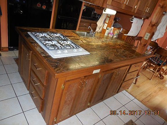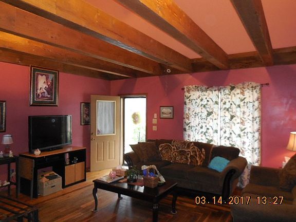Living Room: hardwood floor, vaulted ceiling with exposed wood beams, wood burning heater.Kitchen: a 4'2''x7'2'' center cook island with gas cook top, double ovens, dishwasher; ceramic tile floor in kitchen & hardwood floor & bay window in dining area of kitchen. 3 bedrooms downstairs, 2 bedrooms upstairs. Covered 6'8''x32' front porch & covered 7'10''x19' back porch,& a 19'x8'6'' balcony in the back that looks over the property. Detached 24'x32' workshop with a concrete floor that is wired for 110 & 220.Dbl garage& a 12'2''x18' storage shed with a concrete floor. Minutes from I-55.