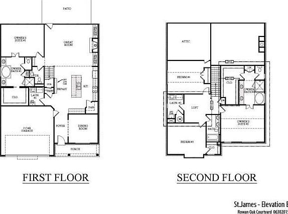 Our St. James Plan features two covered porches, open concept great room with fireplace, formal dining room, and gourmet island kitchen. This plan features double owner suites, one on main level and second level of the home. Both suites feature a bathroom with double vanities and walk-in closet. The second story has 2 additional large bedrooms and full bathroom connected by a wide and open flex/loft space. A full laundry room upstairs completes the second story of this plan. All exterior lawn maintenance is included in the HOA dues at the Courtyard homes!