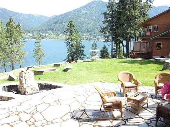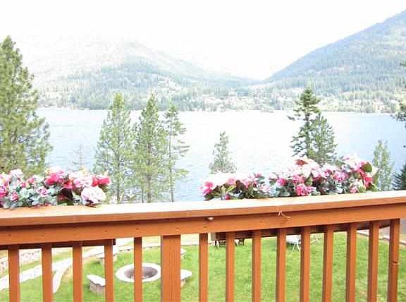 Lovely 2-story waterfront home on the Hope Peninsula on 1 ac. 95' on Lake Pend Oreille with dock and boat lift. 2,200 SF 3 bedroom 2 bath, spacious covered decks, vaulted ceilings. Nicely landscaped yard, fountain, stone steps to the lake, gently sloping. Oversized attached garage, shop for toys, fenced orchard with fruit trees.TURNKEY, all furnishings and appliances included, except a few personal effects.