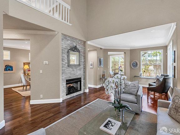 Rare & beautiful 4BD/2.5BA Contemporary w/an excellent floor plan in coveted Stony Brook, steps from renowned Downtown Danville amenities. 1097 River Rock, which is a free-standing home, greets visitors w/a big & bright FLR w/vaulted ceilings, a gas FP, lots of windows & a half guest BA, all perfect for family, friends & entertaining. A nearby FDR w/FP AND an adjoining gourmet kitchen w/Dacor appliances, a dining bar, & a dedicated b-fast room w/sliding doors to the attractive rear patio, completes the main living level. Upstairs is a stately primary suite w/sitting area, plantation shutters & a large primary BA w/soaking tub, separate shower & commode, PLUS a bonus family room/home office that could be a 4th BD (buyers to verify), 2 ample additional BDs, and 2nd full BA w/dual vanity. Warm wood floors, crown moldings, modern updates, and room to grow run throughout this sanctuary. A 2-car garage w/ hobby & storage space, and private rear patios ready for gardening, pets & play, complete this comprehensive offering. Stoney Brook features cobblestone streets, mature landscaping, a community pool, and perhaps best of all, a prime Downtown Danville location steps to shopping and dining, and nearby top-rated schools, parks, the Iron Horse Trail, easy freeway access & much more!