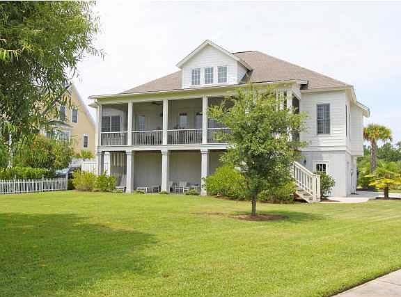 Beautifully appointed Charleston Raised Coastal Home, with wrap around porch, in the very desirable Beresford Creek Landing neighborhood. Located directly across the street from the Clubhouse makes it a breeze to use the amenities such as the Junior Olympic Saltwater pool, Tennis Courts, Beach Volley Ball or Children's play area. The community clubhouse can be used for Cookouts and Private Parties. There is a Neighborhood Dock just down the street and also a locked boat storage lot available for residents' use. Upon arriving, you'll see Hardi Plank siding and Gas Lanterns. When entering the home you'll also notice beautiful hardwood floors and other details such as Plantation Shutters, 10 foot smooth ceilings, deep crown molding, tall baseboards, wainscoting and 8 foot doors in this light-filled home. 4 large Bedrooms along with 3 full and 2 half baths make this home attractive for all families. Formal Dining Doom is large enough to seat 12 comfortably. Sorry Chandelier does not convey, Great Room has a gas fireplace with built-in cabinets on either side with closed storage and shelves for display. This room flows into the Kitchen and Breakfast area and also has french doors leading to the rear screened porch. The kitchen is loaded - Gas Range, Stainless Steel Appliances, 42-inch Cabinets with custom-made dovetailed pantry drawers making it easy to access all necessary items. Granite counter tops and bar stool area finish off this functional and open kitchen. Located next to the Kitchen is a large Laundry room with abundant cabinets, a soaking sink and tile floor. The Master Bedroom Suite is located on the main floor with a bath that includes double vanity with granite countertops, built-in storage cabinets along with a jacuzzi tub, separate shower, tile floor and walk-in closet. A French door provides direct access to the huge screened porch which stretches all the way across the back of the home. Also located on the main floor is a guest room with a private bath and a hall powder room. The second floor has an multi-purpose room with another 1/2 bath. This area could be used as a dedicated exercise room, children's play area, teenage study/hangout, media room or office. Also located upstairs are 2 extra-large bedrooms - each with a private vanity and walk-in closet and are connected by a Jack and Jill bath with a tile floor. These two bedrooms and the Master closet are the only carpeted areas in the house. There is no shortage of storage in this house. Don't miss the TWO walk-in attic storage areas off of the all purpose area, plus a pull down attic above one of the bedrooms. The large garage can accommodate 4 cars plus storage for bikes, sporting and lawn equipment. The Rinnai tank less gas water heater, lawn irrigation and electronic fence controls are located in the garage. There's also back door access to another covered porch and back yard. The total area of the three porches is close to 1300 square feet! BCL is a well kept neighborhood.
