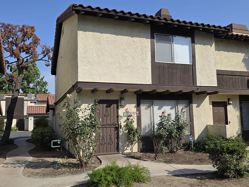 Beautiful, updated, and spacious 2 Bed/1.5 Bath Townhouse for rent in Park Mediterrania in Colton. This 2-story End-Unit is 1,254 SF, features good size rooms, and offers plenty of closet space. It contains 2-fireplaces with one in the Living Room and the other in the Primary Bedroom. Both bedrooms contain Large Walk-in Closets with Private Vanities adjacent to a Jack-and-Jill bathroom. It has a sizeable detached 2-car garage with shelving for extra storage space and is located near the front of the complex for easy street parking. New Quartz Countertops. New Waterproof Vinyl Flooring. New Carpet. New Paint. New Toilets and Showerhead. New Ceiling Fans. New Blinds. New Microwave. Gas Stove. Dishwasher. Refrigerator. Central Air & Heat. Washer/Dryer Hook-ups. Close to Shopping. Easy Access to the 10 & 215 Freeways. No Pets. Owner pays for water. Renter is responsible for gas and electric. Security deposit due upon signing. Renters Insurance to be maintained throughout tenancy. No Smoking. No Pets.