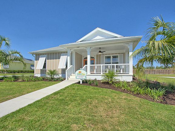 UNDER CONSTRUCTION: MOVE IN BY DEC. 1ST. Step into pure delight with the Roosevelt! From the coastal-styled front porch you will be awed by the beautiful five-lite French doors, the warm foyer, and the quality of details found in this home. The open floor plan features a flex space, formal dining room, huge walk-in pantry, Butler pantry, and an OVERSIZED 3-CAR GARAGE. The kitchen includes quartz countertops, marble tile backsplash, stainless steel appliances, a beverage cooler, and an enormous island making it the ultimate social kitchen. From the family room, you can look out through the many windows and French doors onto the covered lanai and private backyard area, or you can retreat to the master bedroom that is highlighted by a tray ceiling and a one-of-a kind master bathroom. This en-suite has dual sinks, a spacious walk-in shower with modern marble tile, a separate water closet, and master closet with built-in shelving. This home simply has too many luxury features to name! PLUS, the HOA will take care of your beautiful 1/3rd acre lawn so you will have more time to enjoy the community pool, and other amenities. To top it off, this home comes with a complete SOLAR ARRAY designed to provide its owners with little to no energy bills. Come see the smartest homes on the block in this EXCLUSIVE, one-of-a-kind gated community before it's too late! Enjoy peaceful, countryside living all within a few miles of everything you could need at Green Key Village.
