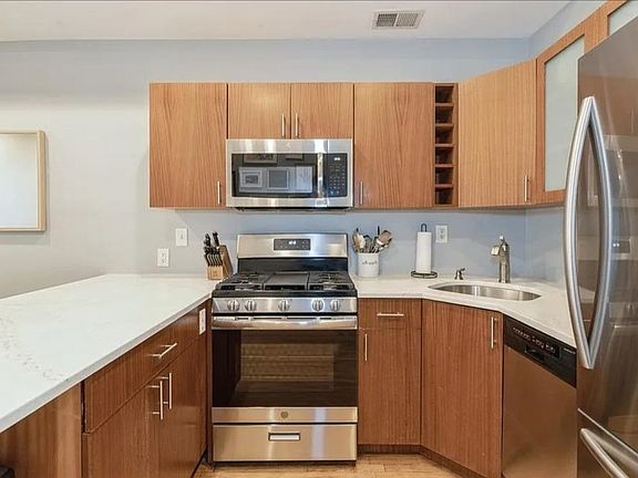 This nice-sized 2 bedroom apartment boasts a well-designed layout with an in-unit washer and dryer, and central air conditioning. Additional amenities include a walk-in closet and a kitchen equipped with gas range, full-sized microwave, dishwasher, refrigerator, and a lovely quartz countertop with breakfast bar. The bathroom has been updated and features a deep soaking tub with jacuzzi. Residents will benefit from a boutique, pet friendly building offering shared outdoor space, with the possibility of additional storage. Well located, close to bus and light rail, 5 star restaurants and cafes as well as the celebrated Riverview-Fisk park, host to organic farmers markets and live music with an amazing NYC view.