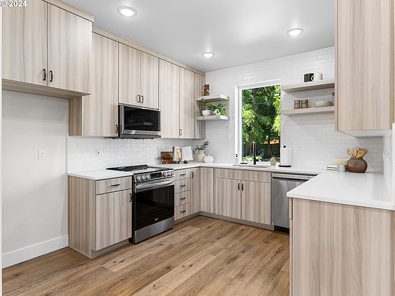 Welcome to your dream home just steps away from the stunning Columbia River. This impeccably designed residence embraces the essence of modern living with its open concept layout and expansive windows that flood the space with natural light, creating an airy ambiance throughout. The heart of this home is the chef's kitchen, showcasing exquisite tilework, sleek modern cabinetry, floating shelves, and gleaming stainless steel appliances. Ample storage, including a spacious pantry, ensures functionality without compromising on style. Flowing seamlessly from the kitchen is a well-appointed dining area adorned with designer lighting, perfect for hosting intimate dinners or festive gatherings. Adjacent to the dining area is the spacious living room, featuring a slider that opens onto a private covered patio space, ideal for enjoying morning coffee or evening sunsets in tranquility. Upstairs, the spacious primary suite offers a walk-in-closet, and luxurious bathrooms with stunning tilework. Two additional bedrooms complemented by a beautifully appointed bathroom finish off the upper level. Situated for optimal convenience, this home not only offers unparalleled comfort and style but also provides easy access to parks, shopping, restaurants, and grocery stores, making it a perfect blend of luxury and convenience. Don't overlook the chance to own this exceptional home where every detail has been carefully curated for the epitome of modern living. (List price is subject to the buyer qualifying for the Portland Housing Bureau - System Development Charge exemption program to promote affordable housing in Portland, call for more info.)