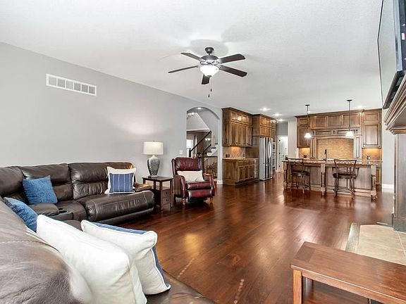 Perfect in Prairie Brook. Kit offers beautiful cabinets, large granite isld w/ seating, ss appliances & pantry. Butlers bar leads into the large dining room w/ wainscoting. Gleaming hardwoods & Walls of windows. Living room w/ cozy fireplace. Office/5th Bedroom on main level. Mud room off garage entry. Large master & spa like bath w/ huge walk-in closet, laundry off the closet. Screened in deck w/ fireplace overlooks private wooded backyard. Walk-out lower level w/ 6th bedroom, full kitchen & extra storage space.