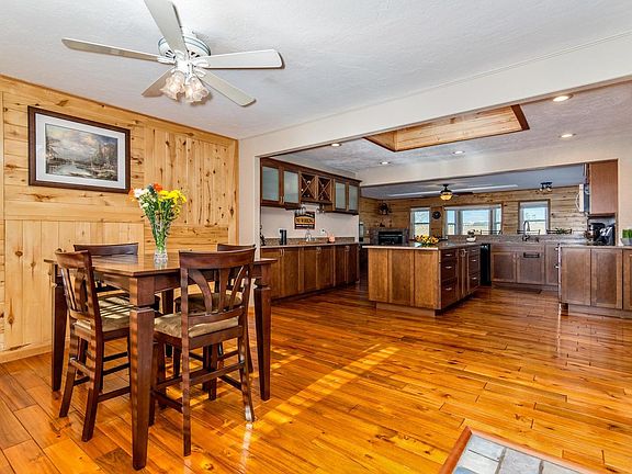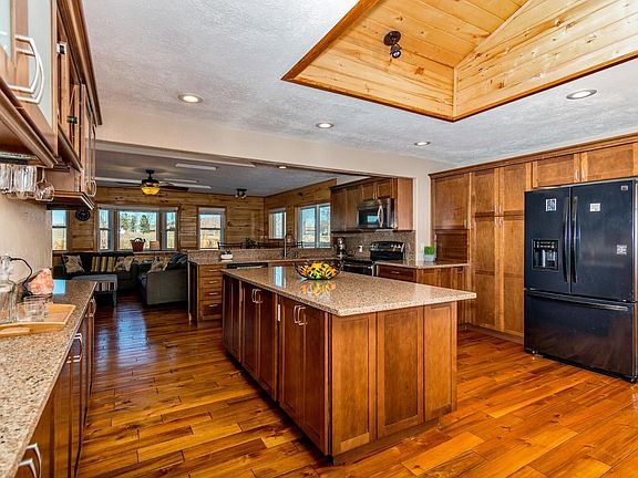 Open Saturday Jan 12th 11-2. Spacious 5 bedroom / 4 bath home with gorgeous remodeled kitchen. Open floor plan with Koa wood floors. The large kitchen is perfect for entertaining with beautiful cabinets, quartz counters, double oven and large island. Large living room with cozy gas fireplace, bay window with mountain view, skylights and built-in speakers. Main floor laundry with washer and dryer included. The master bedroom also has a skylight and walk-in closet. Large family room in basement with heated floors and 3/4 bath. New roof, newer furnace, central A/C and water heater. Double pane vinyl windows throughout. Large yard with large back patio wired for hot tub, gazebo, RV parking, storage shed and raised bed gardens. Close to recreation center, parks, trails and highway access.