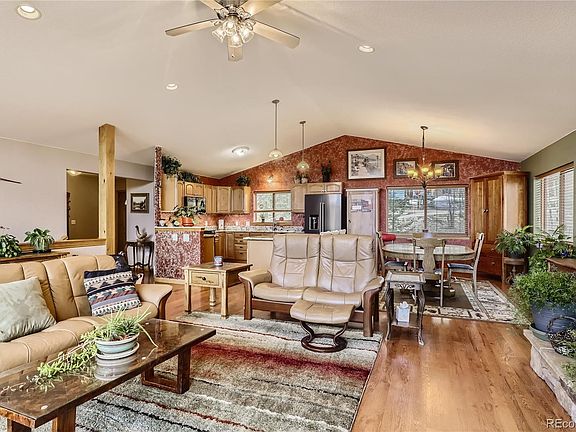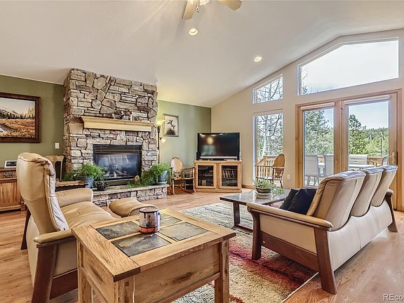 This beautiful home on just over an acre is a nature lover's dream, with large windows throughout that offer breathtaking views of the surrounding Conifer mountains & forest! Less than 10 minutes to Conifer/285 & 20 minutes to Evergreen Lake make this mountain retreat easily accessible. Step into the main grand living room, where you'll be greeted by an open, updated kitchen, a cozy fireplace, tons of natural light, & walkout access to the deck. The upgraded kitchen is perfect for the home chef, with plenty of counter space, built-in cabinet organization, & modern appliances. The primary bedroom on the main floor features a gorgeously updated ensuite bath with Onyx-Lava stone tile, electric heated flooring, & floor to ceiling shower. *Updated granite countertops throughout all bathrooms* The second main floor bedroom is perfect for guests or a home office, with a full bath outside of the bedroom. Head downstairs to the family room, with an new beetle-kill wood stairway, Cherrywood & ebony floor to ceiling built-in entertainment center/book shelves, & newer pellet stove, with walkout access to the covered patio. The basement also features an additional oversized bedroom & updated 3/4 bath! The laundry room also has plenty of space for storage. An oversized 2 car garage is connected to the basement with built-in soft close cabinets & room for all your tools & outdoor toys - or you can always store in the 12X16 shed outside of the garage! This home is truly a nature lover's paradise, with endless opportunities for hiking, biking, & exploring the great outdoors. Whether you're watching the wildlife from your window or taking a leisurely stroll through the forest, you'll love the peace & tranquility that comes with living in Conifer! *Roads are all maintained by the county. Milliken Drive is maintained by a friendly neighbor at no additional cost *High speed internet access to WFH* Septic tank has been maintained twice yearly for $400*