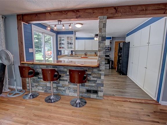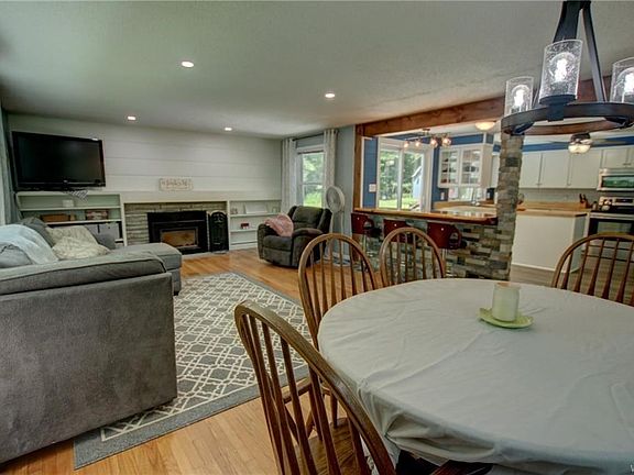 Set back from the road this 4 bedroom ranch offers total privacy! 5 wooded acres with a stocked pond. Recently updated home with two full modern baths, three season sun room, open living room/kitchen dining room combo with hardwood floors, recessed lights and fireplace with wood burning insert. Unique solid wood breakfast bar with built in accent lights, brand new kitchen counters and sink, sliding glass doors to exterior. Plenty of storage everywhere. His and her closets in master (one walk in closet). Stairs access to attic, roof 1yr, newer furnace , hot water tank, and water softener. Breezeway entrance, 2 car attached garage, recently painted exterior. Be sure to follow the path to the screened in shelter with firepit. Beautiful wooded grounds, secluded and peaceful! Open Saturday 8/7/21 from 1:00 to 3:00. Offers if any, due 8/11/21 at 5:00 PM. 2021-08-18