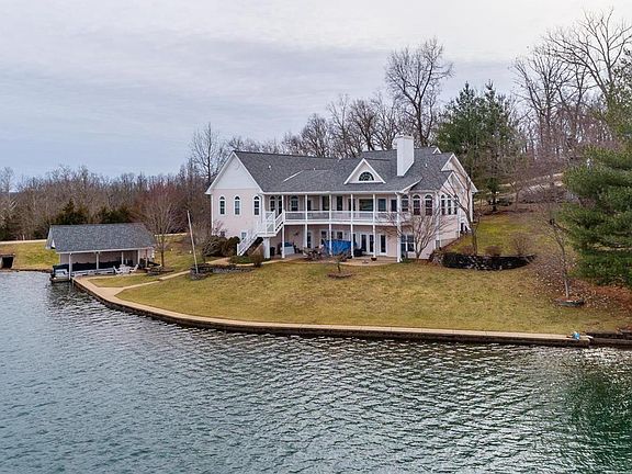 One-of-a-kind LAKEFRONT 4 bed/5 bath custom-built ranch home on 90 acre Lac Shayne (ski lake) at Terre du Lac lake and golf resort. Best spot on the lake with amazing floor-to-ceiling lake views! Private covered boathouse with lift and over 180 ft of poured concrete seawall. Current owners have lovingly updated the main living area by removing columns to open it up, installing a new double-sided gas fireplace (living room and hearth room) and new 'Renewal by Anderson' windows, which open up to an east-facing 40 ft long back deck. Wood floors. Also offers updated kitchen with newly refinished butcher block countertops, convection/conventional range, and brand new French door refrigerator. Main level laundry, and brand new roof on house and boathouse. Main level master bedroom suite has wood floors, garden tub, oversized shower, walk-in closet, and lake views. Lower level is fully finished, and walks out to covered 33x20 patio. Family room and rec room with wet bar for entertaining!
