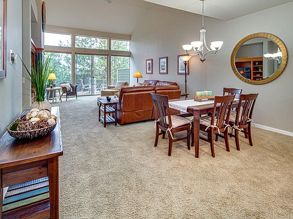 Beautifully furnished turnkey townhome in Creekside Village at Eagle Crest Resort! Open-concept floorplan featuring a great room with a built-in entertainment center, gas fireplace, and vaulted ceiling. Spacious dining area and a well-appointed kitchen with granite counters, a breakfast bar, and slate floors. Main level primary suite with laundry area, walk-in shower, and large soaking tub. Two additional guest rooms and a loft on the upper level. Expansive paver deck with outdoor lounge chairs, firepit, and patio dining set. Front and rear storage rooms for convenience. Eagle Crest Resort has three 18-hole golf courses, an 18-hole putting course, three sports centers, miles of paved trails, and direct access to BLM trails.