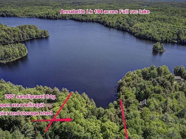 Gorgeous Annabelle Lake lot used by owner for the past 50 years! He said it is time to pass this awesome gem on to the next generation. Driveway is in to a nice grassy clearing with fire pit and seating area along with improved open path to the 200' of swimming frtg with pier. Seller built a solid and attractive storage shed at the wood line to keep all the water toys. Seller is including the fishing boat too! This 1.4 acre lot will be an enjoyable one to use as it is now or to easily build a walkout style home with level approach to the lake. Seller wanted it priced to move and to be the best parcel at the best price on the market. This lot is arguably the nicest one on this body of water and the price is terrific.