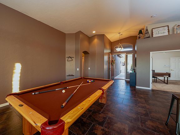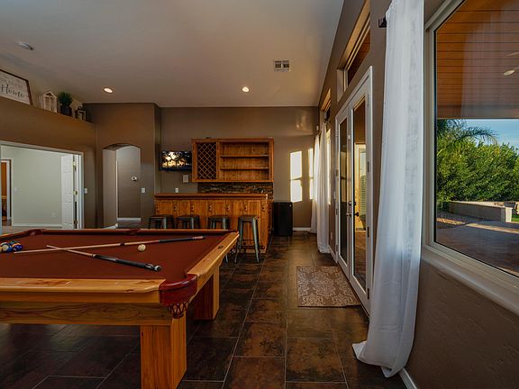 Professionally designed landscaped backyard with captivating mountain views on .43 acres. Custom features include fire pots on the landing, a waterfall flowing into the self-cleaning-solar-pebble-tec pool, 600 s.f. of covered patio space with a built in BBQ, large gas firepit with seating & pavers throughout. The second level provides a basketball court & separate area of artificial grass. The home is equally as stunning with 5 bedrooms and 3 bathrooms, which includes GUEST QUARTERS, with its own private entrance! Beautiful kitchen with hickory cabinets, SS appl & soft close/dove tail drawers. Spacious family room with custom entertainment center w/accent lighting. Formal living and dining includes custom built bar for entertaining. Schedule showing today... Your Next Chapter Starts Here