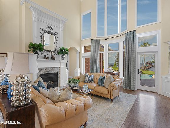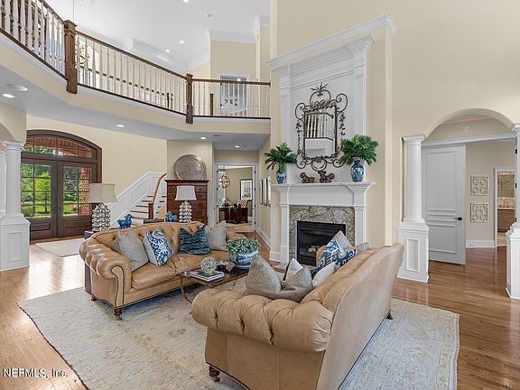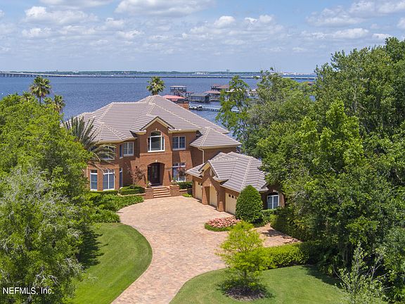 Truly extraordinary riverfront property is move-in ready & meticulously maintained w/ excellent floor plan. Breathtaking views of St. Johns river at every turn. Ideal family/kitchen combo. FR w/ custom built-ins, FP, hardwood flooring & motorized blinds. Gracious 2-story LR. Elegant DR. Downstairs owner's suite w/ separate sitting area & two-sided fireplace. Newly renovated, stunning bath w/ white marble & inviting soaking tub. Spacious his/hers closets. Library w/ full bath can also be downstairs guest BR. 3 U/S BR w/ ent. loft. Peaceful outdoor living is second to none w/ expansive yard, pool, dock, boat and jet ski lifts, 2-story entertainment boathouse. Incredible screened-in side porch w/ trex decking & summer kitchen. Pavered driveway, 3-car garage. Professional photos coming soon!