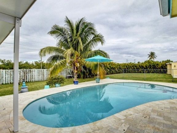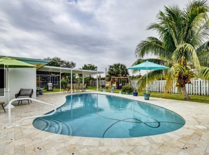 Contact home owner directly phone number below. Not cooperating with agents at this time. Tastefully updated 4 bedroom 2 bath pool home in desirable quiet family friendly West Boca community. Soak up the south Florida sunshine or sit and relax and enjoy the stunning sunsets on this expansive Travertine pool deck. Take a dip in the newly renovated serene no maintenance Salt Water Pool. The 21 foot x 12 foot overhang ensures plenty of shade to entertain and enjoy this tranquil outdoor living space. A fenced in yard allows kids to play on a new swing set while having the privacy of no rear neighbors. This home features a spacious kitchen with oversized custom cabinets and Quartz countertops. An open floor plan welcomes you to a separate living room and formal dining room highlighted by a huge family room perfect for family gatherings. Tile and laminate throughout and both bathrooms newly updated. Ideal West Boca location with A rated schools, Loggers Run Park, South County Regional Park, Coconut Cove Water Park, Coconut Cove Amphitheater, Osprey Pointe Golf Course, Daggerwind Nature Center and a dog park are all near by. Ride your bike or take a walk on the neighboring bike paths where you can enjoy tennis, basketball, soccer, playground, picnic pavilions and a skate park. Don’t miss this hidden gem! Very low HOA.