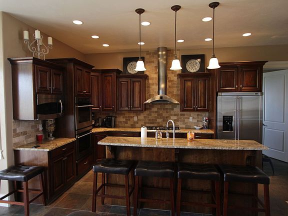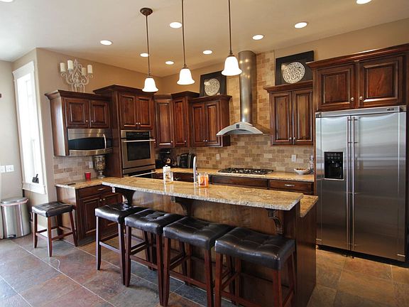 REMARKABLE ACREAGE RANCH HOME. This stylish rambler boasts 10' ceilings throughout the main floor with hardwood in the living and dining areas and slate kitchen flooring. The kitchen is dreamy with custom GE Monogram appliances featuring double ovens, dual dishwashers and custom refrigerator. Granite counter tops throughout the home. Large main floor office, and the desk stays! Wrap around staircase takes you down to the theater/family room with retractile screen and projection system. The over-sized four car garage will fit all of your toys. Spacious covered composite deck leads to the back yard. The lot offers 4.95 acres currently left natural, but water rights are present for pasture or yard expansion.