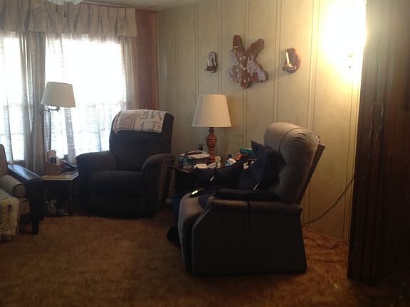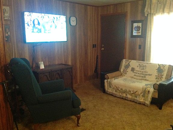 Home is on a slab and has a roof over. Covered front and back porch. Fenced. Paved driveway. 12 x 20 storage building,insulated. Rural area but set up for city gas and water. Main bathroom has just been updated for handicapped accessible.